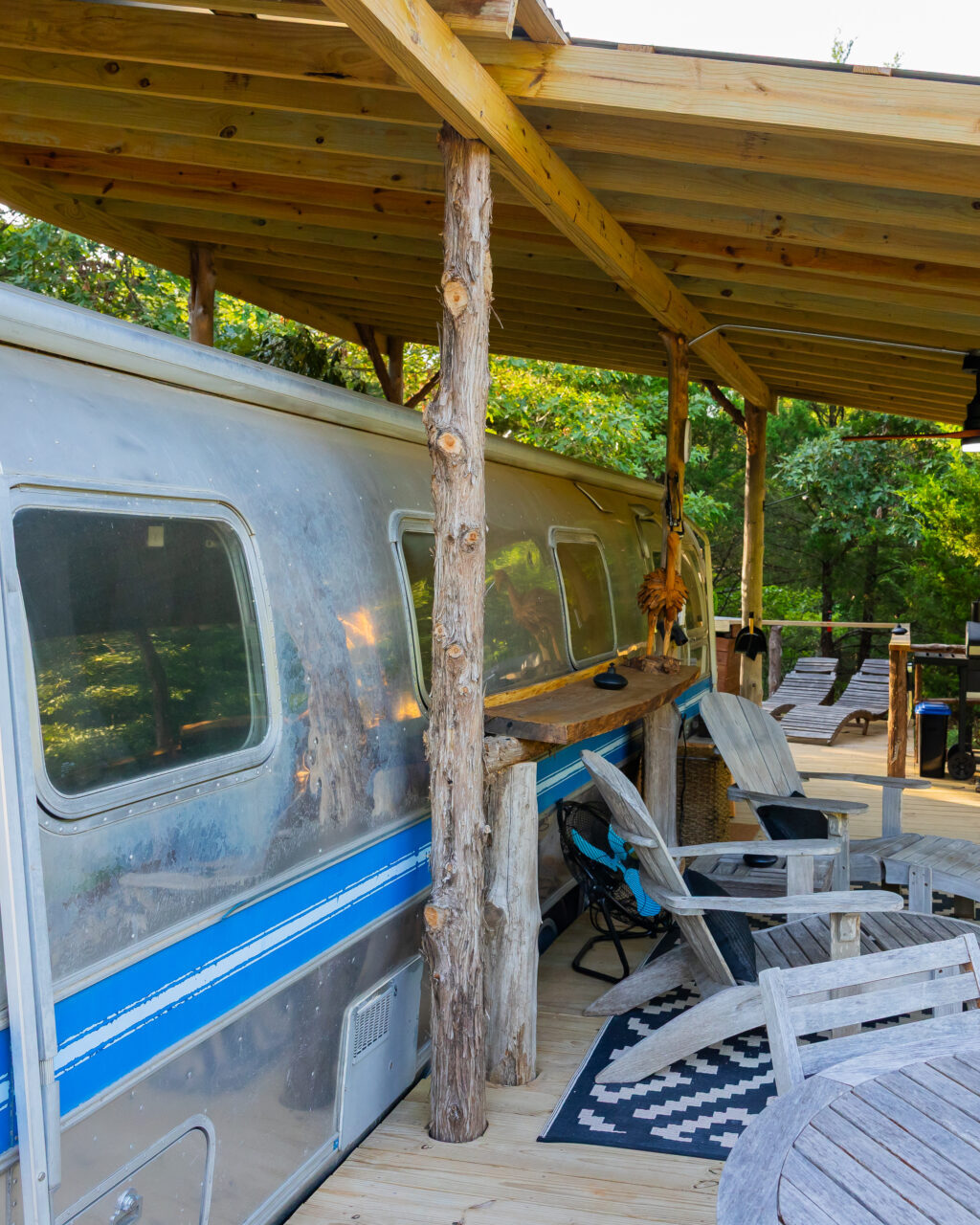 Retro Icon, Modern Luxury. This fully remodeled Airstream boasts a king bed, stocked kitchen, spa-style bath, and wraparound deck with dining, firepit, and even a private inflatable spa. Comfort, charm, and a touch of play—your getaway awaits.